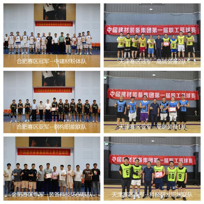 賽事期間,球員們積極進攻,嚴密防守,技術精湛,默契配合,巧妙搶斷、突破、上籃、傳球、跳投……矯健的身姿、拼搏的斗志,一系列精彩絕倫的攻防瞬間,讓現(xiàn)場觀眾目不暇接,“燃爆”了一個個精彩瞬間,為大家?guī)砹艘粓鰣龌@球盛宴!激烈角逐下,天津賽區(qū)高端裝備2隊以全勝戰(zhàn)績斬獲冠軍,高端裝備1隊屈居亞軍,科技研發(fā)與職能聯(lián)隊榮獲季軍。合肥賽區(qū)中建材粉體隊重奪冠軍獎杯,中建材鋼構與職能聯(lián)隊首奪亞軍,中亞環(huán)保與裝備科技聯(lián)隊榮獲季軍,中建材機電隊獲體育道德風尚獎。